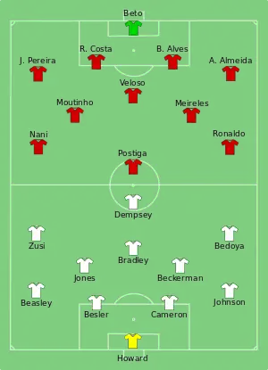 The two teams had met in five previous matches, including in the 2002 FIFA World Cup group stage, won by the United States 3–2.[21] Portugal defender Pepe was suspended for the match after his red card against Germany.[22]