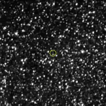 2014 PN70 is one of the objects that New Horizons observed from greater distances, as part of its extended Kuiper belt mission. The spacecraft passed 2014 PN70 in March 2019, at a distance of approximately 0.1 AU (15 million km; 9.3 million mi). This made 2014 PN70 the third closest KBO observed by New Horizons, after Arrokoth and 2014 OS393.[17] New Horizons made its first observations of 2014 PN70 on 5 January 2019, from a distance of 92.7 million km.[18]
