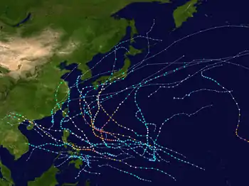 On May 5 and 6, China Meteorological Administration's Shanghai Typhoon Institute (CMA-STI) predicted that 26-28 tropical storms would develop over the basin, while Tropical Storm Risk issued their first forecast for the season and predicted an active typhoon season.[1] As a result 27 tropical storms, 17 typhoons and 11 intense typhoons were predicted to occur, while an ACE Index of 375 was also predicted by TSR.[1] In late June Taiwan's Central Weather Bureau predicted that 29-32 tropical storms would develop over the basin, while three-five systems were expected to affect Taiwan itself.[3] Within its July — December seasonal climate outlook, PAGASA predicted that eight to ten tropical cyclones were likely to develop and/or enter the Philippine area of responsibility between July and September, while five to seven were predicted for the October–December period.[4] Within its two final forecasts for 2014, Tropical Storm Risk predicted that 26 tropical storms, 16 typhoons and 9 intense typhoons would develop over the basin.[1]