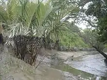 The 2014 Sundarbans oil spill was an oil spill that occurred on 9 December 2014 at the Shela River in Sundarbans, Bangladesh, a UNESCO World Heritage Site.[2][3] The spill occurred when an oil-tanker named Southern Star VII,[4] carrying 350,000 litres (77,000 imp gal; 92,000 US gal) of furnace oil, was in collision with a cargo vessel[3] and sank in the river.[5] By December 17, the oil had spread over a 350 km2 (140 sq mi) area.[6] The oil spread to a second river and a network of canals in Sundarbans, which blackened the shoreline.[7] The spill threatened trees, plankton, and vast populations of small fish and dolphins.[8] The spill occurred at a protected mangrove area, home to rare Irrawaddy and Ganges dolphins.[9] By 12 January 2015, 70,000 litres (15,000 imp gal; 18,000 US gal) of oil had been cleaned up by local residents, the Bangladesh Navy, and the government of Bangladesh.[10]