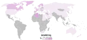 On 15 July, Demirtaş outlined his road-map for his presidency should he win the election. In a speech lasting just under an hour, he proposed that the Presidency of Religious Affairs (Diyanet) should be disbanded, that compulsory religion lessons in schools should be removed and that Cemevis (the Alevi houses of worship) should receive national recognition.[144] He also proposed the introduction of "People's Parliaments" (Cumhur meclisleri), which would also incorporate Youth Parliaments to increase representation of young citizens.[145] Pushing for a new constitution, Demirtaş outlined the need to end the non-representation of different cultures, languages, races and beliefs without delay to ensure national stability.[146] Also in his speech, he praised the Gezi Park protests and displayed photos of himself during the events. He continued to direct applause to the mother of the murdered teenager Berkin Elvan, who died 269 days after being hit by a tear gas canister during the protests and falling into a coma.[147] On the issue of the lack of Turkish flags within the hall in which he was delivering his speech, Demirtaş stated that the Turkish flag represented all citizens of Turkey.[148] His slogan is "Bir Cumhurbaşkanı Düşün" (Imagine a President...), which is followed by several different phrases, such as "Bir Cumhurbaşkanı Düşünün Ayrımcılık yapmıyor. Birleştiriyor, barıştırıyor." (Imagine a President who doesn't Discriminate, who Unites and makes Peace) or "Bir Cumhurbaşkanı Düşünün Herkese Demokrat" (Imagine a President who is Democratic to Everybody).[144]