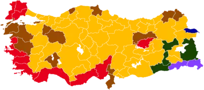 A map showing the distribution of MPs in the 81 provinces in terms of which candidate they support