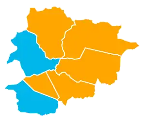 | Liberal Party of Andorra | 4,073 | 27.69 | 4 | 3,962 | 27.54 | 4 | 8 | New | |