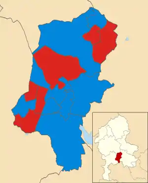The Conservative Party won the highest number of seats and votes, gaining four seats from Labour and one from the Lib Dems as well as holding the four seats they had won at the 2011 election. They also regained two seats from councillors who had defected since 2011, one who went to UKIP and one who became an independent.