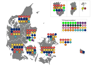 | East Jutland | 27.3 | 18.9 | 18.7 | 7.4 | 8.3 | 6.1 | 4.9 | 4.4 | 2.8 |