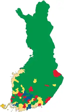 Parliamentary elections were held in Finland on 19 April 2015,[1] with advance voting taking place from 8 to 14 April.[2] The 200 members of the Parliament of Finland were elected with the proportional D'Hondt method.
