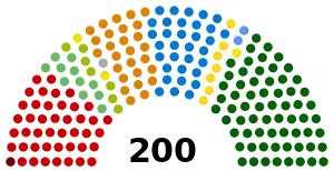 The Swiss People's Party won a record number of seats, taking a third of the 200-seat lower house. The SVP received the highest proportion of votes of any Swiss political party since 1919, when proportional representation was first introduced,[6] and it received more seats in the National Council than any other political party since 1963, when the number of seats was set at 200.[7]