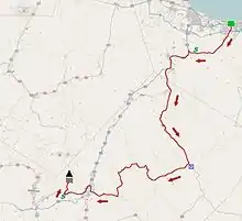 Stage 2 was the longest of the race, covering a 195-kilometre (121-mile) route from Al Hazm Castle to Al-Bustan. It was classified as a flat stage, but there were two notable climbs within the last 25 kilometres (16 miles), presenting the opportunity for riders to attack close to the finish.[15][16]