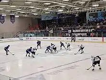 Opening faceoff of game one of the Final between Anyang Halla and Sakhalin.