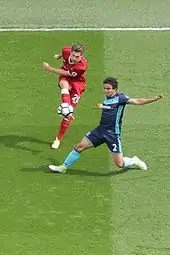 Liverpool went to play Sunderland, where Sturridge opened the scoring with a header, but minutes later Jermain Defoe levelled it from the spot so that it would go 1–1 at half-time. Mané scored another for 2–1 in the 71st minute, but ten minutes later, he handled the ball in the penalty area with the referee pointing to the spot. Defoe scored once again and the match ended level, with the reds missing out important points.[37] On 8 January, Liverpool played a goalless draw against Plymouth Argyle in the third round of the FA Cup. The match was marked with the Reds fielding the youngest starting 11 in their history.[38] Liverpool then faced Southampton, on 11 January, in the EFL Cup semi-finals first leg at St Mary's, losing the game 1–0 with Redmond scoring the only goal in 20th minute.[39] Three days later, the Reds faced Manchester United at Old Trafford. Milner opened the scoring from the spot in the 26th minute, after Paul Pogba handled the ball in the box. In the 84th minute, Zlatan Ibrahimović levelled the match 1–1.[40] Liverpool were up to play the replay with Plymouth on the 18th. A goal by Lucas Leiva in the 17th minute made them earn their first and last win in January.[41] Later in this month, Liverpool hosted Swansea City in the Premier League. Early in the second half, two fast goals by Fernando Llorente gave Swansea the commanding position. However, Liverpool levelled through Firmino in the 54th and 69th minute. Gylfi Sigurðsson finished a shot in the back of the net for 2–3.[42] On 25 January, Liverpool hosted Southampton in the second leg of the EFL Cup semi-final. They dominated the match, made some good chances, including a shot by Can cleared off the line by Southampton goalkeeper Fraser Forster. At the stoppage time, Shane Long sealed the win for the Saints with a goal to make the aggregate score 2–0.[43] The bad month for Liverpool continued, as they were eliminated from the FA Cup after a 1–2 home loss to Wolverhampton Wanderers.[44] The Reds ended the month with a 1–1 home draw to Chelsea in the Premier League, where David Luiz opened the scoring with a free-kick, just to leave it for Wijnaldum to level in the 58th. Diego Costa saw his penalty shot stopped by Mignolet in the 78th minute.[45]
