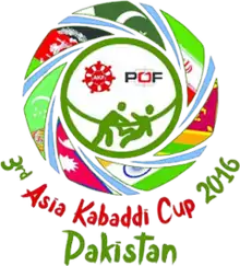 2016 Asia Kabaddi Cup was the third season of the Asia Kabaddi Cup hosted by Pakistan[1] which commenced from May 2, 2016, in Pakistan Ordnance Factory Sports Complex, Wah Cantt.[2] The final of this event was played on May 6.[3] The event was broadcast live on PTV Sports.