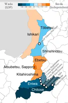 Wada campaigned strongly on his position as a successor to his father-in-law Machimura, whilst also providing his twenty years of experience in a trading company as evidence of his ability to improve economic conditions and promote the export of Hokkaido's agricultural produce.[3] Wada was well-supported by the LDP and Komeito during the campaign, with many prominent members visiting the district.[3]