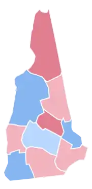 Hillary Clinton's margin of victory was the smallest for a Democrat in the state since Woodrow Wilson narrowly won it in 1916. New Hampshire last voted for a Republican, George W. Bush, in 2000, and although Trump did not win New Hampshire, the top-line county results were exactly the same in 2000 and 2016. Despite Trump's narrow loss, this would be the first and only presidential election since 2000 where New Hampshire would vote more Republican than the national average, when the Republican candidate won more of the state's counties, along with the first time since 1976 when the winner of Coos County did not also carry the state as well. Coincidentally, New Hampshire voted as Republican in 2016 as it did Democratic in 2012 and 2020 in comparison to the rest of the nation.
