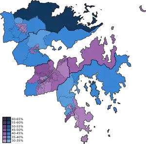 ![]() Parties with most votes by each district | |||||||||||||||||||||||||