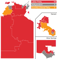 All 25 seats of the Northern Territory Legislative Assembly 13 seats needed for a majority | ||||||||||||||||||||||||||||||||||||||||