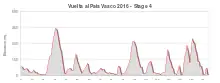 The route of the 2016 Tour of the Basque Country was generally mountainous, with no stages suited for the sprinters. The first stage included eight categorised climbs, the last of which was 8.3 kilometres (5.2 mi) from the finish.[2] The second finished with a 2-kilometre (1.2 mi) climb at an average gradient of 11.7%;[3] the third and fourth stages again contained multiple climbs shortly before the finish. The fifth stage was the most difficult, with the 5.5-kilometre (3.4 mi) climb of the Arrate (referred to by its Basque name Usartza and averaging 8.5%), shortly before the finish. The final stage was a hilly individual time trial around Eibar.[4]