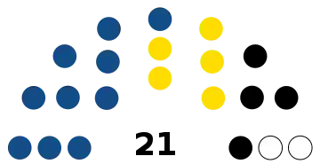 15 out of 21 seats in the House of Assembly | ||||||||||||||||||||||