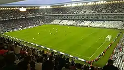 The current St. Jakob-Park, nicknamed "Joggeli" by fans, was built in 1998 and opened in 2001, and is the home stadium of Basel. It hosted six matches at UEFA Euro 2008, including the opening match and a semi-final. Its current capacity is 38,512, but is reduced to nearly 36,000 seats for UEFA competitions.[5]