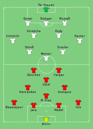 - "Tactical Line-up – Final – Chile-Germany" (PDF). FIFA.com. Fédération Internationale de Football Association. 2 July 2017. Archived from the original (PDF) on August 30, 2017. Retrieved 2 July 2017.