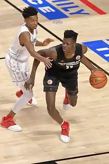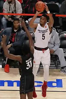Michael Porter Jr. earned the MVP award after leading his Team West to a close win with 17 points. Originally committed to the University of Washington, he decommitted after the firing of head coach Lorenzo Romar and instead chose to represent his home state by playing for the University of Missouri. [3]