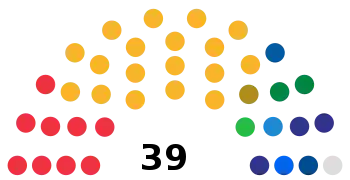 All 39 seats in the Sámi Parliament 20 seats needed for a majority | |||||||||