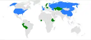 The 2017 United Nations Security Council election was held on 2 June 2017 during the 71st session of the United Nations General Assembly, held at United Nations Headquarters in New York City. In addition to the regular elections for five of the non-permanent seats on the UN Security Council, there was by-election for a sixth seat held by Italy who relinquished its seat at the end of the year as part of a term splitting agreement with the Netherlands.[1] The regular elections are for two-year mandates commencing on 1 January 2018; the by-election is for the remainder of Italy's term.[1] In accordance with the Security Council's rotation rules, whereby the ten non-permanent UNSC seats rotate among the various regional blocs into which UN member states traditionally divide themselves for voting and representation purposes, the five regularly available seats are allocated as follows: