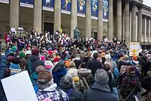 - 21 January – 2017 Women's March: thousands of people march in London, Belfast, Cardiff, Lancaster, Leeds, Liverpool, Manchester, Shipley, Edinburgh and Bristol – as well as millions more in countries around the world – in protest at Donald Trump's inauguration as 45th President of the United States.[17]