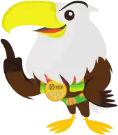 The official mascot of the Games is a Bondol eagle named Momo whose name is short for motivation and mobility. Momo represents the icon of the capital city of Jakarta and also represents spirit. Momo wears a Betawinese Belt with Sarong.