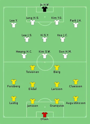 - "Tactical Line-up – Group F – Sweden v Korea Republic" (PDF). FIFA.com. Fédération Internationale de Football Association. 18 June 2018. Retrieved 18 June 2018.