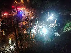 Immediately after the crash, some passengers tried to attack the driver.[4][9] Fire services officers had to cut into the bus to rescue those trapped inside, an operation that took about 85 minutes.[5] A makeshift morgue was set up at the roadside.[4]
