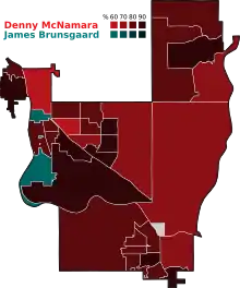 Denny McNamara won the Republican nomination over James Brunsgaard in the primary election. McNamara said he appreciated Brunsgaard's willingness to put himself forward for public office. Brunsgaard said he would support Libertarian candidate Emily Mellingen.[12]