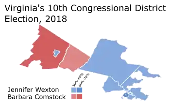 Virginia's 10th congressional district election was one of the highest-profile United States House of Representatives elections of 2018, and the most competitive and costly in Virginia,[1][2][3] as the Republican incumbent congresswoman Barbara Comstock lost to Democrat Jennifer Wexton.[4][5][6]