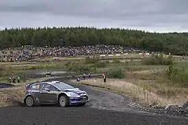 The 2018 Wales Rally GB (formally known as the 74. Dayinsure Wales Rally GB) was a motor racing event for rally cars that took place over four days between 4 and 7 October 2018. The event was open to entries competing in World Rally Cars and cars complying with Group R regulations. It marked the seventy-fourth running of Rally Great Britain and was the eleventh round of the 2018 FIA World Rally Championship,[3] the highest class of competition in international rallying. Sixty crews, including manufacturer teams and privateers,[4] were entered to compete in the World Rally Championship, the FIA World Rally Championship-2 and FIA World Rally Championship-3 support series and the MSA British Rally Championship.[5][lower-alpha 2] The 2018 event was based in Deeside in Flintshire and consisted of twenty-three special stages throughout North and Mid-Wales.[1] The rally covered a total competitive distance of a 318.34 km (197.81 miles) and an additional 1,083.01 km (672.95 miles) in transport stages.[6]