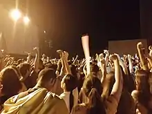 On 1 December, the so-called Continental Cacerolazo was held, in Bogotá the Andean cacerolazo was held in Park Way[20] and popular assemblies began in neighborhoods of Bogotá.[21] A week later the so-called "Concert of the Strike" or "A Song for Colombia" was held in Bogotá on 8 December at the Simón Bolívar Park with artists such as Doctor Krapula, Bomba Estéreo, Adriana Lucía, Diamante Eléctrico, Totó la Momposina, among others.[22] On 10 December, mobilizations were held for International Human Rights Day,[23] 82 holding sit-ins in front of the National University of Colombia and the National Center for Historical Memory, ending in Disturbances. On the other hand, ESMAD made two illegal arrests.[24] On 16 December, a cacerolazo was held in front of the Congress of the Republic when the tax reform or "Economic Growth Law" was debated in rejection of it. In Cali there were riots in the Juanchito sector.[25] Three days later, a demonstration was held in the north of the country's capital, riots broke out in front of the Colombian Stock Exchange and a young man loses an eye when fleeing to the National Pedagogical University.[26]