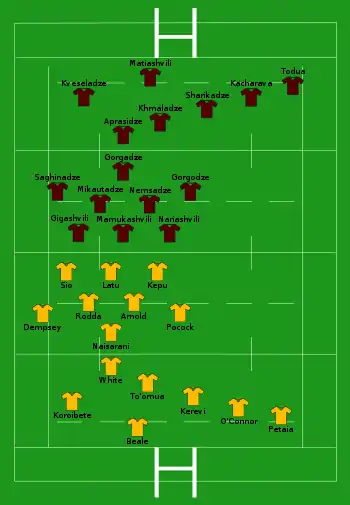 | Try: Gorgodze 53' c Con: Matiashvili (1/1) 55' Pen: Matiashvili (1/2) 35' |
