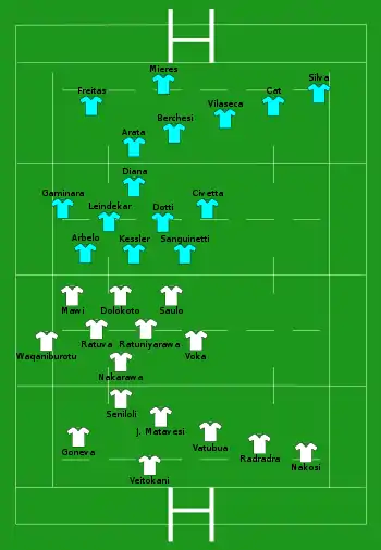 Report | Try: Yato 9' m Nayacalevu 44' c Con: Volavola (1/2) 46' Pen: Volavola (3/3) 5', 23', 31' |