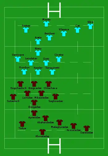 | Try: Todua 9' m Giorgadze 30' c Chilachava 43' c Bregvadze 52' c Kveseladze 58' c Con: Abzhandadze (4/5) 30', 44', 53', 59' |