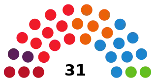 The City Council of Zaragoza (Spanish: Ayuntamiento de Zaragoza) was the top-tier administrative and governing body of the municipality of Zaragoza, composed of the mayor, the government council and the elected plenary assembly.[1] Elections to the local councils in Spain were fixed for the fourth Sunday of May every four years.[2]