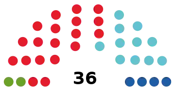 | Remaining seats | 4 | 3 | 4 | 2 | 0 | 0 | 13 | |||||||