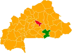 ![]() Presidential Election Results by Province. Orange denotes districts won by Kaboré, Red denotes districts won by Komboïgo and Green denotes districts won by Diabré. | |||||||||||||||||||||