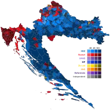 Parliamentary elections were held in Croatia on 5 July 2020.[1] They were the tenth parliamentary elections since the first multi-party elections in 1990 and elected the 151 members of the Croatian Parliament. 140 Members of Parliament were elected from geographical electoral districts in Croatia, three MPs were chosen by the Croatian diaspora and eight MPs came from the ranks of citizens registered as belonging to any of the 22 constitutionally recognized national minorities.[lower-alpha 2]