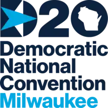 The originally-slated logo of the 49th Democratic National Convention, which included a geographical representation of the host state of Wisconsin