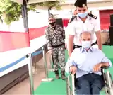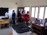 An elderly Egyptian voter is disabled inside a polling station; to cast his vote in the 2020 Egyptian Parliament election
