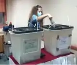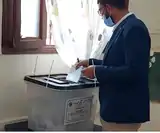 An Egyptian woman casts her vote; In the 2020 elections for members of the Egyptian Parliament