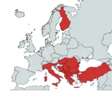 | a. | ^ The political status of Kosovo is disputed. Having unilaterally declared independence from Serbia in 2008, it is formally recognised as an independent state by 97 UN member states (with another 15 recognising it at some point but then withdrawing recognition), while Serbia continues to claim it as part of its own sovereign territory. |