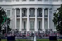 On July 28, Trump said that he would accept the nomination in person in Charlotte.[74] However, on August 5, he said he would "likely" accept the Republican nomination from the White House.[75][76][77] A decision to accept a party's nomination from the White House would break a norm;[76][77] the Associated Press noted that it would "mark an unprecedented use of federal property for partisan political purposes."[78] The proposed plans also raised legal questions under the Hatch Act, which creates certain prohibitions on the use of public resources for political activity, and the legality of the plan was questioned by Republican senators Ron Johnson and John Thune.[76] While the president is exempt from the Hatch Act's restrictions, the law applies to other federal employees. The ethics director of the Campaign Legal Center stated that "any federal employee who helps facilitate the acceptance speech risks violating the Hatch Act."[78] Nonetheless, Trump tweeted that he had decided to hold it on the White House lawn anyway, announcing on August 13 that he had finalized this decision.[79] It was ultimately decided that Trump's speech would be delivered from the South Lawn.[80]