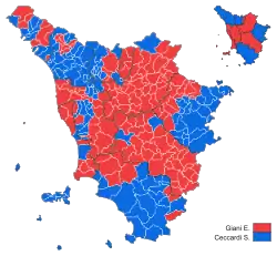 | Eugenio Giani | 864,310 | 48.62 | 1 | Democratic Party | 563,116 | 34.69 | 22 | ||