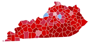 Trump won Kentucky by a 25.9% margin in this election. Prior to the election, all 12 news organizations considered this a state Trump would win, or a safe red state. The Bluegrass State has not supported a Democratic nominee since it narrowly supported fellow Southerner Bill Clinton in 1996. Trump's overhaul of Obama-era coal emissions standards helped him win coal-industry households,[3] once again sweeping the historically-Democratic Eastern Kentucky counties. Trump also carried 83% of White evangelical/born-again Christians, per exit polls by the Associated Press.[4] In addition to Trump's victory in the Commonwealth, Biden became the first Democrat to win the presidency without winning Elliott County since the county was founded in 1869,[5] as well as only the second Democrat to ever lose Elliott County in a presidential election, preceded only by Hillary Clinton four years earlier. This also marks the second consecutive election in which no county in the Eastern Kentucky Coalfield voted Democratic, albeit the first time since 2008 that any of said counties experienced a Democratic swing. Furthermore, this is the first time since 1948 that Fayette County, the second-most populous county in the state and home to the city of Lexington, voted to the left of Jefferson County, the most populous county in the state and home to the city of Louisville, in a presidential election.