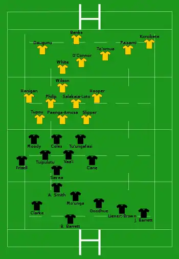 | Try: Ikitau 28' m Wright 38' m Unknown 72' m |