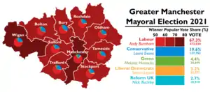 ![]() Results of the 2021 Greater Manchester mayoral election by borough | ||||||||||||||||